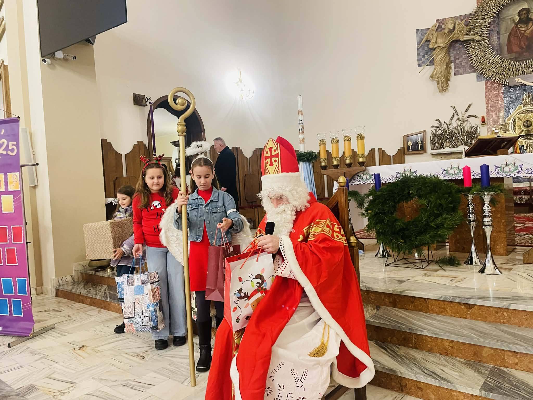 Święty Mikołaj nas nie ominął i w tym roku! Odwiedził nas dzisiaj i przyniósł prezenty dzieciom oraz wszystkim młodym zaangażowanym w życie parafii.